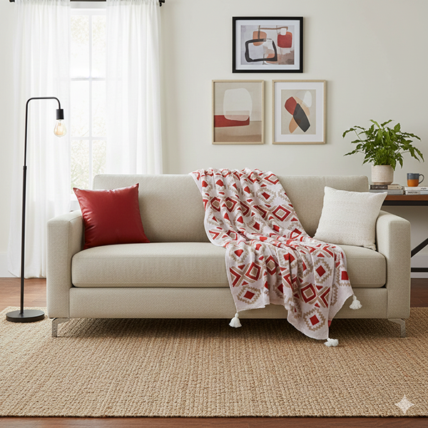 - کاربردی: علاوه بر استفاده بر روی مبل، این شال میتواند به عنوان یک پوشش زیبا برای تخت، صندلیها و روانداز نیز مورد استفاده قرار گیرد. همچنین میتوانید از آن به عنوان یک دکوری برای فضاهای مختلف منزل استفاده کنید.