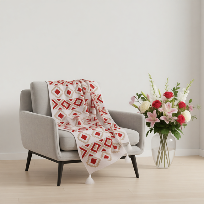 شال مبل پانچ قرمز ، یک گزینه جذاب و مدرن برای کسانی است که میخواهند به دکوراسیون منزل خود جلوهای خاص و متفاوت ببخشند. این شال با طراحی خلاقانه و رنگهای شاداب، میتواند به راحتی فضای نشیمن شما را زیباتر کند.این شال مبل با توجه به قالب سفید رنگ و قرمز که در پانچ ها وجود دارد قابل استفاده در مبل هایی با رنگ سفید، قرمز ، زرشکی ، مشکی و رنگ هایی در طیف سفید و قرمز می باشد.