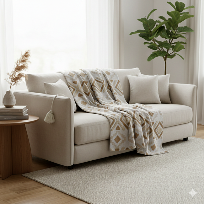 - جنس با کیفیت: شال مبل طرح پانچ از پارچههای نرم و باکیفیت تهیه شده است که نه تنها زیباست بلکه احساس راحتی را نیز فراهم میکند. این جنس مقاوم در برابر سایش و استفاده روزمره بوده و دوام بالایی دارد.