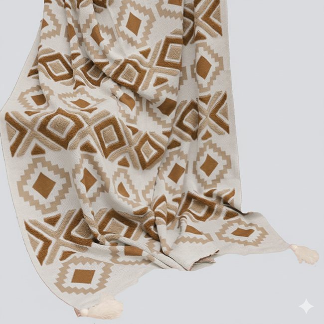 شال مبل طرح پانچ، یک گزینه جذاب و مدرن برای کسانی است که میخواهند به دکوراسیون منزل خود جلوهای خاص و متفاوت ببخشند. این شال با طراحی خلاقانه و رنگهای شاداب، میتواند به راحتی فضای نشیمن شما را زیباتر کند.این شال مبل با توجه به قالب سفید رنگ و عسلی که در پانچ ها وجود دارد قابل استفاده در مبل هایی با رنگ عسلی، سفید، نسکافه ای، قهوه ای، گردویی، کاپوچینویی و رنگ هایی در طیف قهوه ای می باشد.