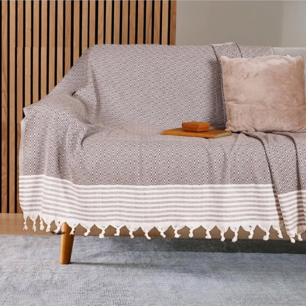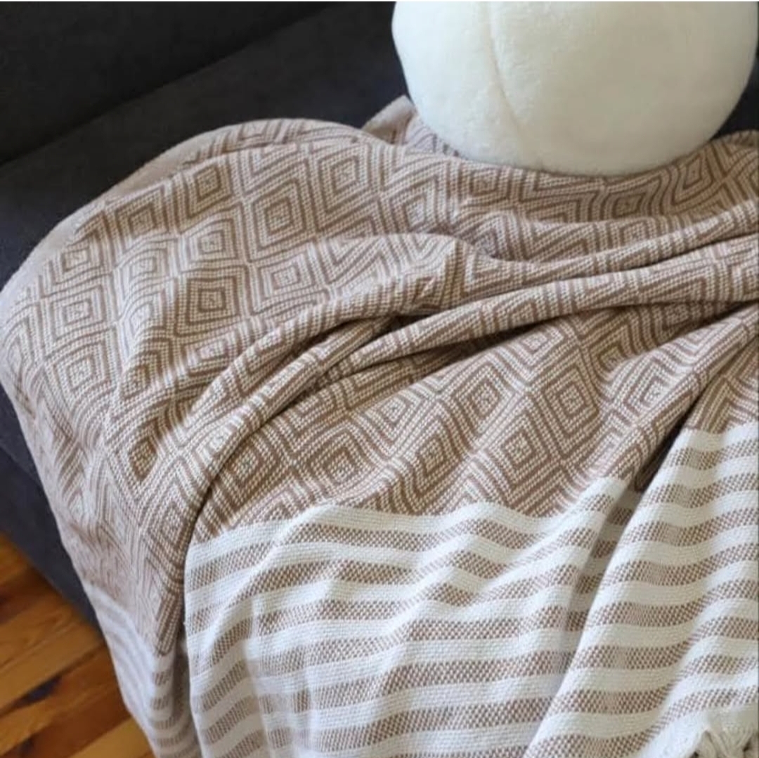 شال مبل نخ پنبه ترک طرح مینیمال – ۱۷۰×۲۱۰ سانتی‌متر | لطافت و زیبایی دکور خانه شما