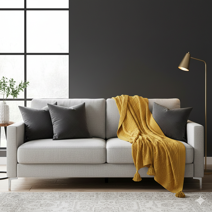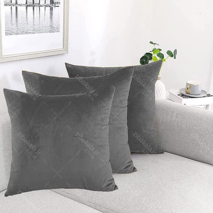 کوسن مخمل طوسی تیره از نمای نزدیک