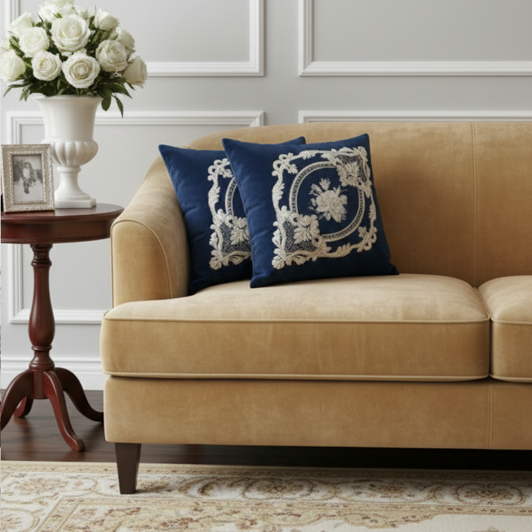 جنس: مخمل ابروبادی سورمه ای و پنل دانتل دوخته شده