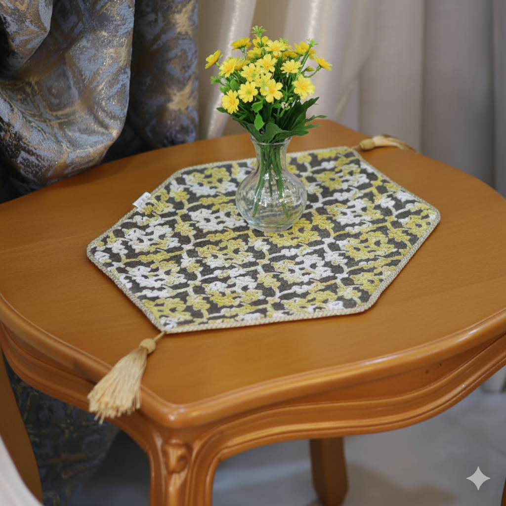 رومیزی رنگ قهوه ای طلایی طرح خاتون