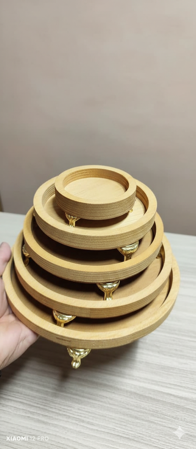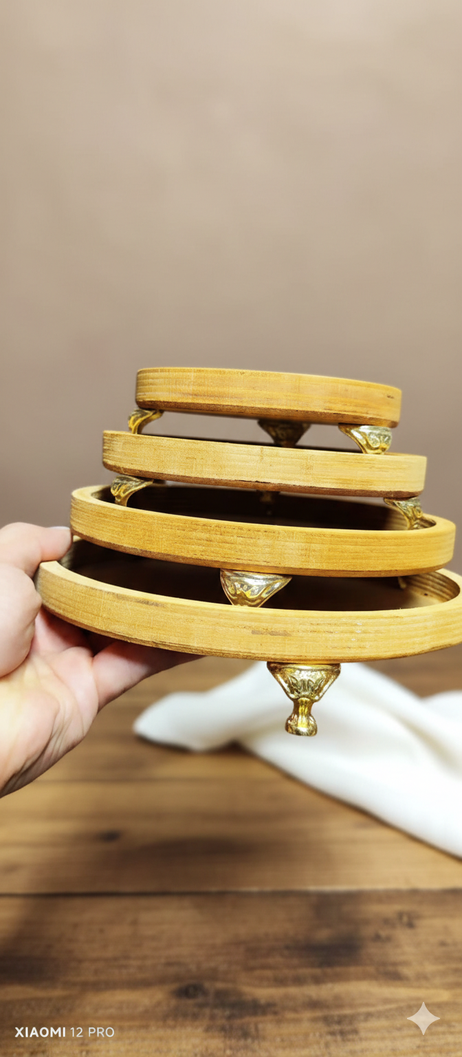 سینی 5 تکه گرد پایهدار چوبی